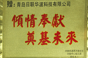 青岛日联华波科技有限公司获得河套街道西河套社区中心幼儿园“倾情奉献,奠基未来”称号;